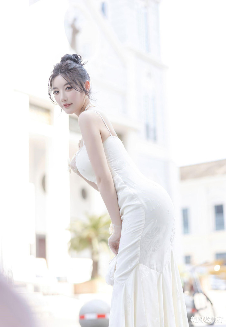 杨晨晨性感穿搭:白色吊带裙系列,仪态万方